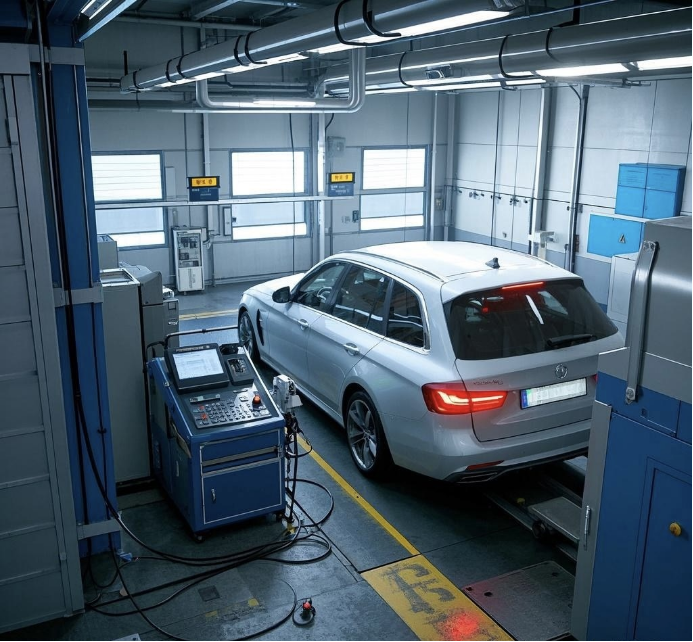 这款设备的效率革命,源于全流程智能化技术的深度应用,彻底颠覆了传统设备 “人工操作 + 分步检测” 的低效模式。搭载的 AI 智能协同算法,可实现 “一车一策” 的全流程自动化检测:车辆驶入检测线后,系统自动识别车型、读取车辆信息,同步启动尾气检测、安全性能检测、灯光检测等多个模块并行工作,无需人工切换流程。例如在尾气检测环节,采用红外光谱快速分析技术,60 秒内即可完成 6 项污染物指标检测,较传统设备提速 40%;安全性能检测中,高清视觉识别与机械臂协同作业,自动完成刹车片、轮胎、灯光等 12 项指标检测,全程无需人工干预,单台车全项目检测时间从传统的 8 分钟压缩至 4 分钟以内,检测效率直接提升 50%。