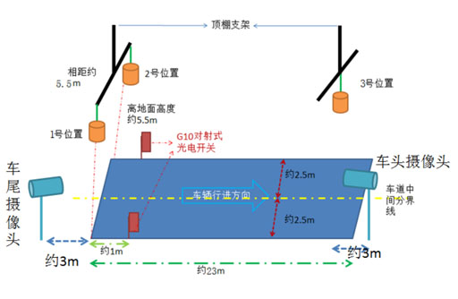 通过智能化测量装置得出车辆的外廓三维图像及长度、宽度、高度、货箱栏板高度、轴距,销轴距综合监测数据,对于半挂车型,牵引车带挂体一起通过该系统,能同时测量出牵引车以及挂体相关信息,一次完成测量。并且将监测数据与车辆原始数据进行比对(或与车管所数据库中该车辆外廓尺寸原始数据自动进行比对和判定),便于车辆管理部门或车辆检测机构对车辆的监督管理。