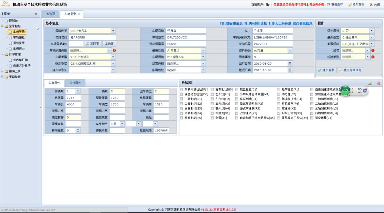 车辆唯一性、车辆特征、车辆外观检查、安全装置、底盘动态检验、车辆底盘部件、制动力、灯光、车速表指示误差、转向轮横向侧滑量、路试制动性能、动态轮荷、车辆外廓尺寸、整备质量
